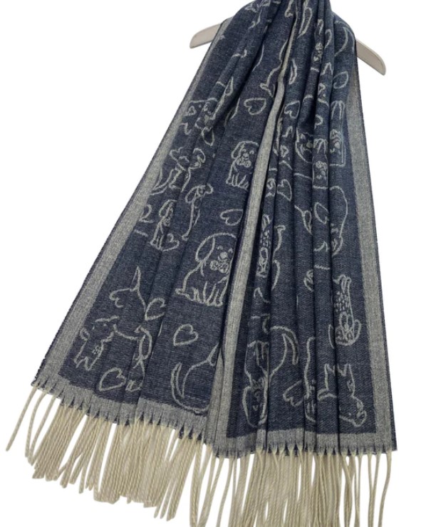 Ein Schal zum Verlieben! Der Schal setzt mit seinen süssen Hunden und Herzen einen modischen Akzent zu jedem Outfit.
