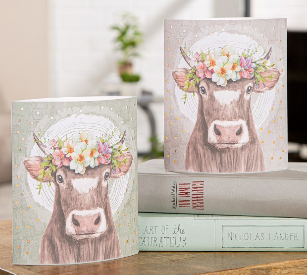 Die süße Kuh mit Blumenkranz verbreitet gute Laune und ist ein echter Hingucker – ob auf dem Fensterbrett, im Regal oder als stimmungsvolles Deko-Element auf dem Tisch.
