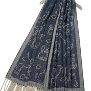 Fransenschal mit Hunden und Herzen – grau